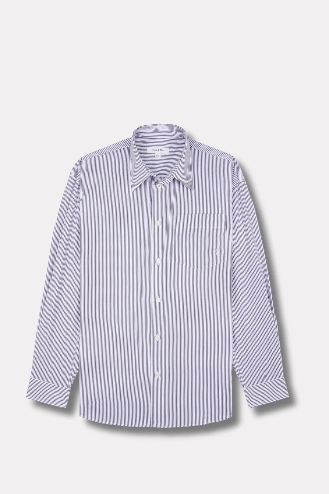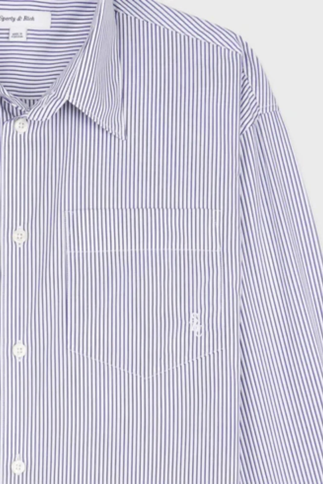 The SRC Embroidered Oversized Shirt from Sporty & Rich is an oversized striped shirt made from cotton poplin.