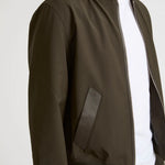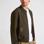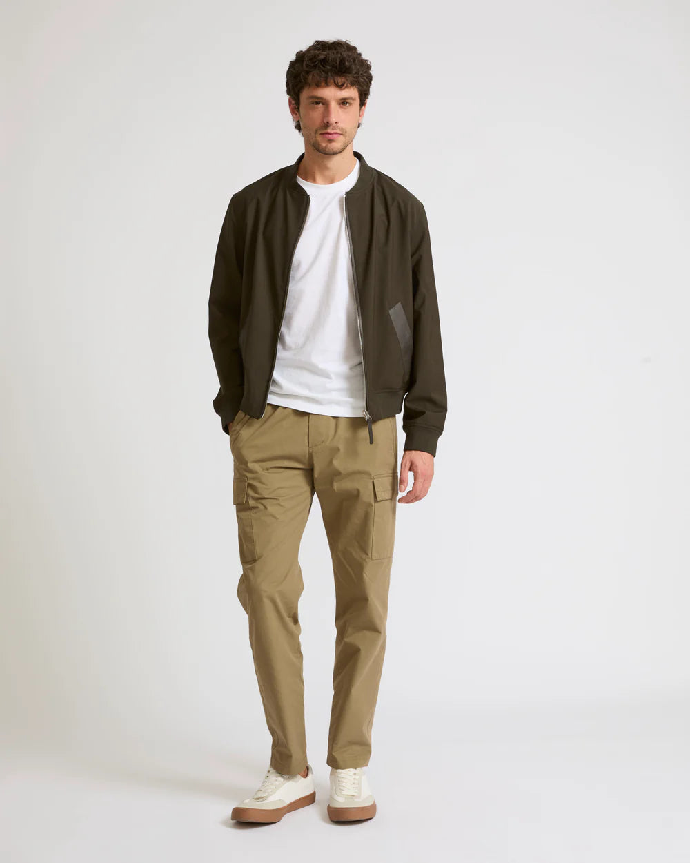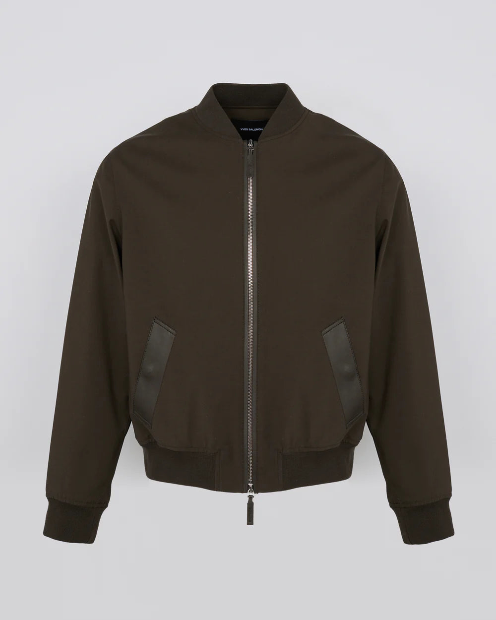 The classic lines of the varsity jacket are worked in a technical fabric combining wool and polyester, allowing for a luxurious feel and a protection against the elements. Its shorter shape is upgraded with leather detailing and a jersey lining.