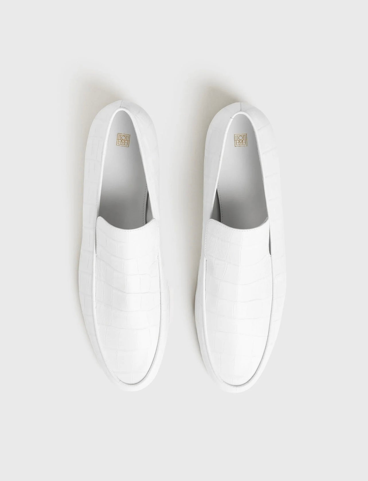 TOTEME reinterprets classic loafers with this minimalist pair, which is embossed with a modern croco pattern. They're made from leather sourced from a tannery certified according to the Leather Working Group's standards and set on a small stacked heel with a rubber insert. Wear them to work with tailored separates.