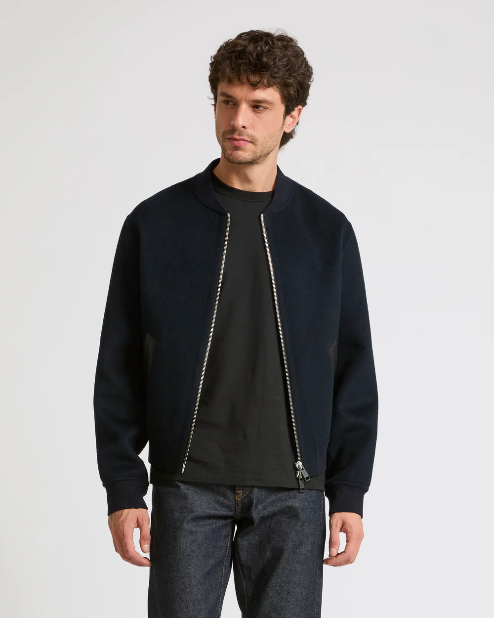 Double-sided wool-cashmere varsity jacket