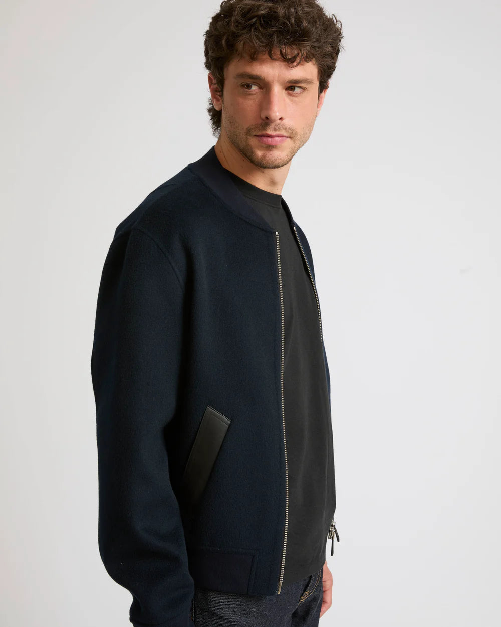 A classic varsity shape and luxurious materials for this jacket in a double-sided wool-cashmere blend, featuring hand-worked leather details.