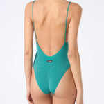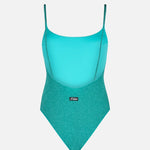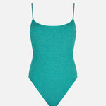 Keep it classic with Cecille's delicate straps and scooped neckline that perfectly combine comfort and elegance. This one-piece swimsuit is crafted from lurex fabric, woven with fine metallic threads for a unique shimmering finish